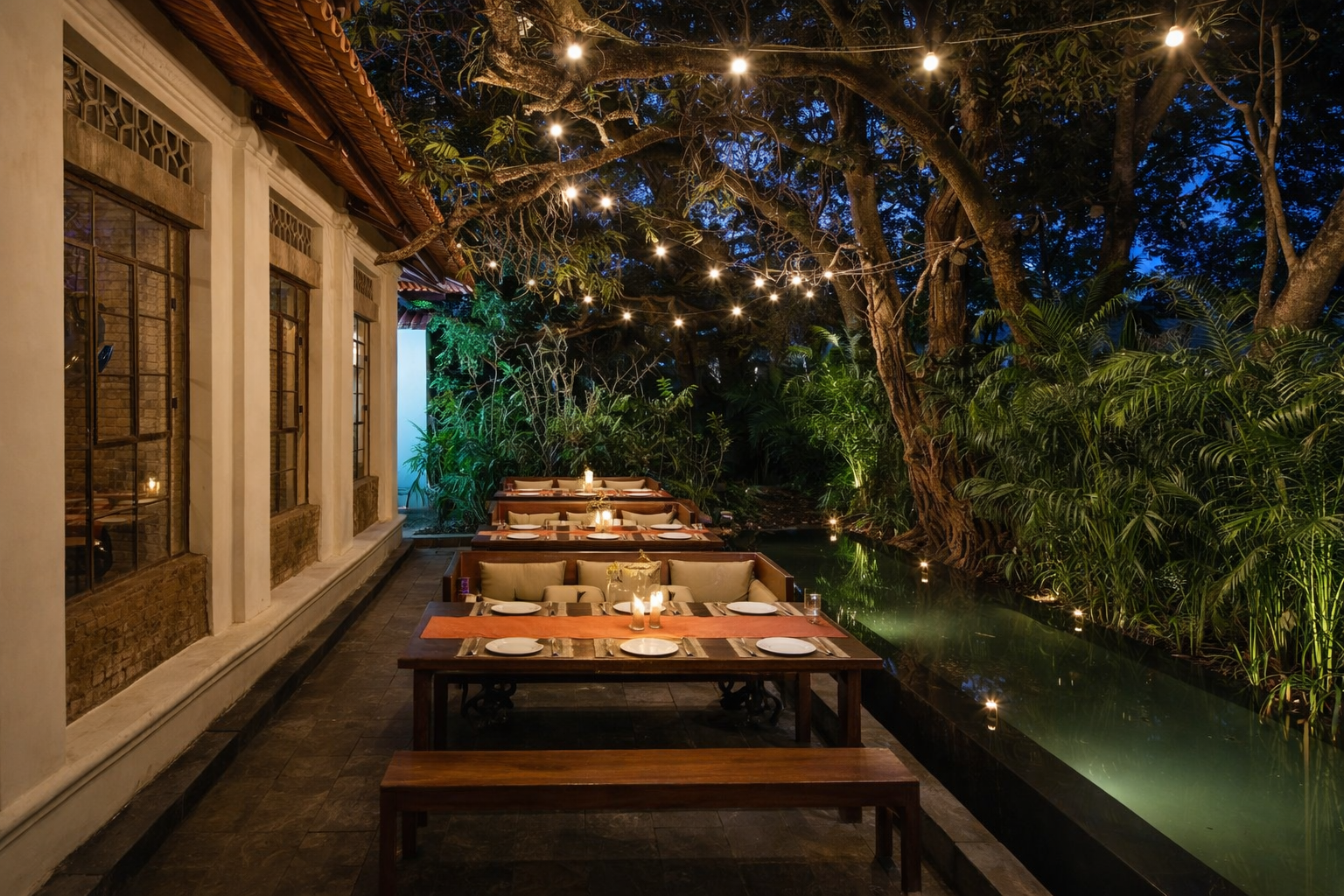Open-air tables inside old walls, made for long conversations and late nights.